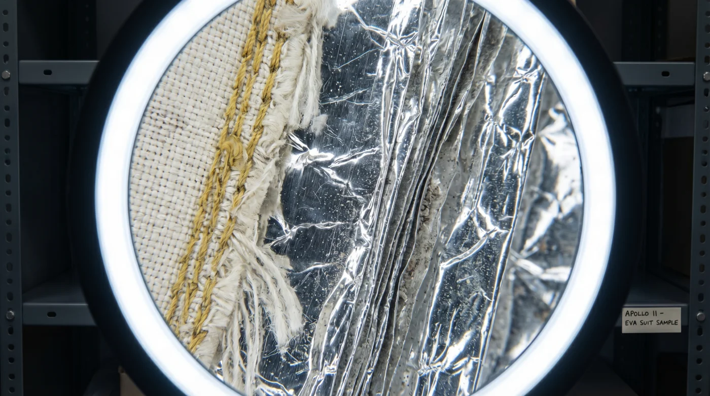 Aquí es donde cambia tu perspectiva radicalmente. Neil Armstrong no caminó en el Mar de la Tranquilidad envuelto en gruesas capas de lana aislante. Su traje A7L estaba construido con múltiples capas de Mylar aluminizado, un material diseñado con un solo propósito: rebotar la radiación térmica de vuelta al vacío.