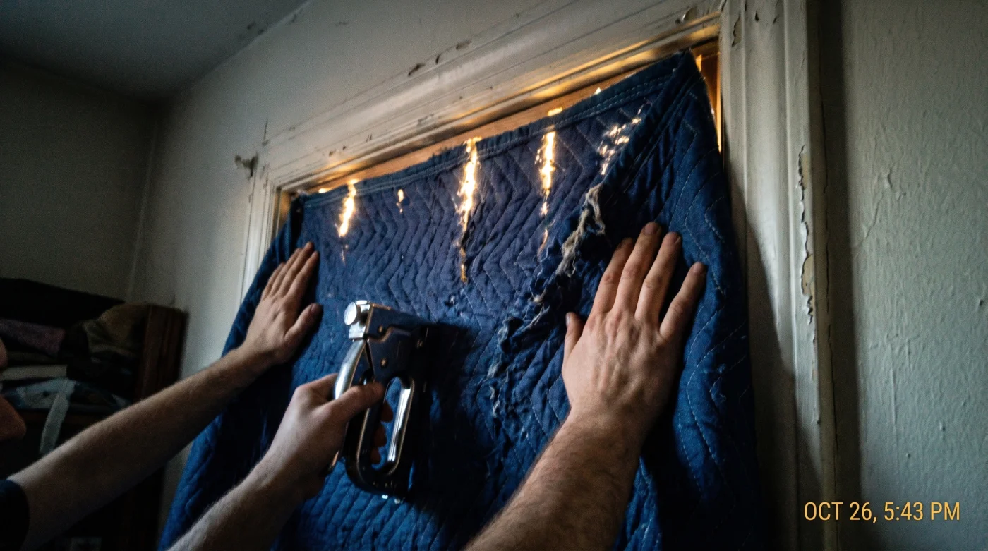 El primer secreto de esta técnica es crear una cámara de aire entre el cristal de la ventana y la tela pesada. Ese espacio vacío es tu primera línea de amortiguación.