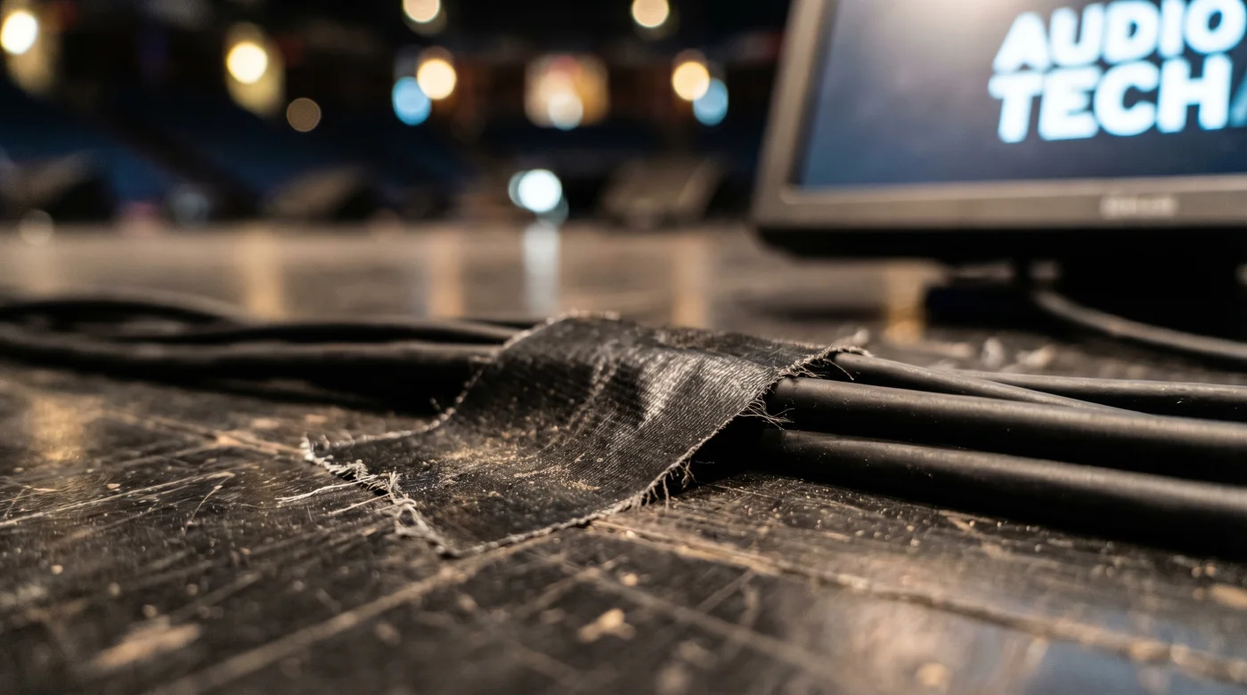 Sin este héroe oscuro y pegajoso, la ilusión auditiva y visual se derrumba en un segundo de descuido. Un paso en falso sobre un cable XLR suelto podría desconectar el micrófono principal a mitad de una frase definitiva, o peor aún, derribar a un competidor frente a millones de espectadores en vivo. Convertiría una batalla histórica en una pausa incómoda y silenciosa que destruiría por completo la energía del momento.