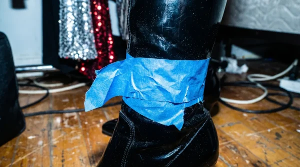 - Martin Elias Jr brilla botas oscuras frotando cáscaras maduras