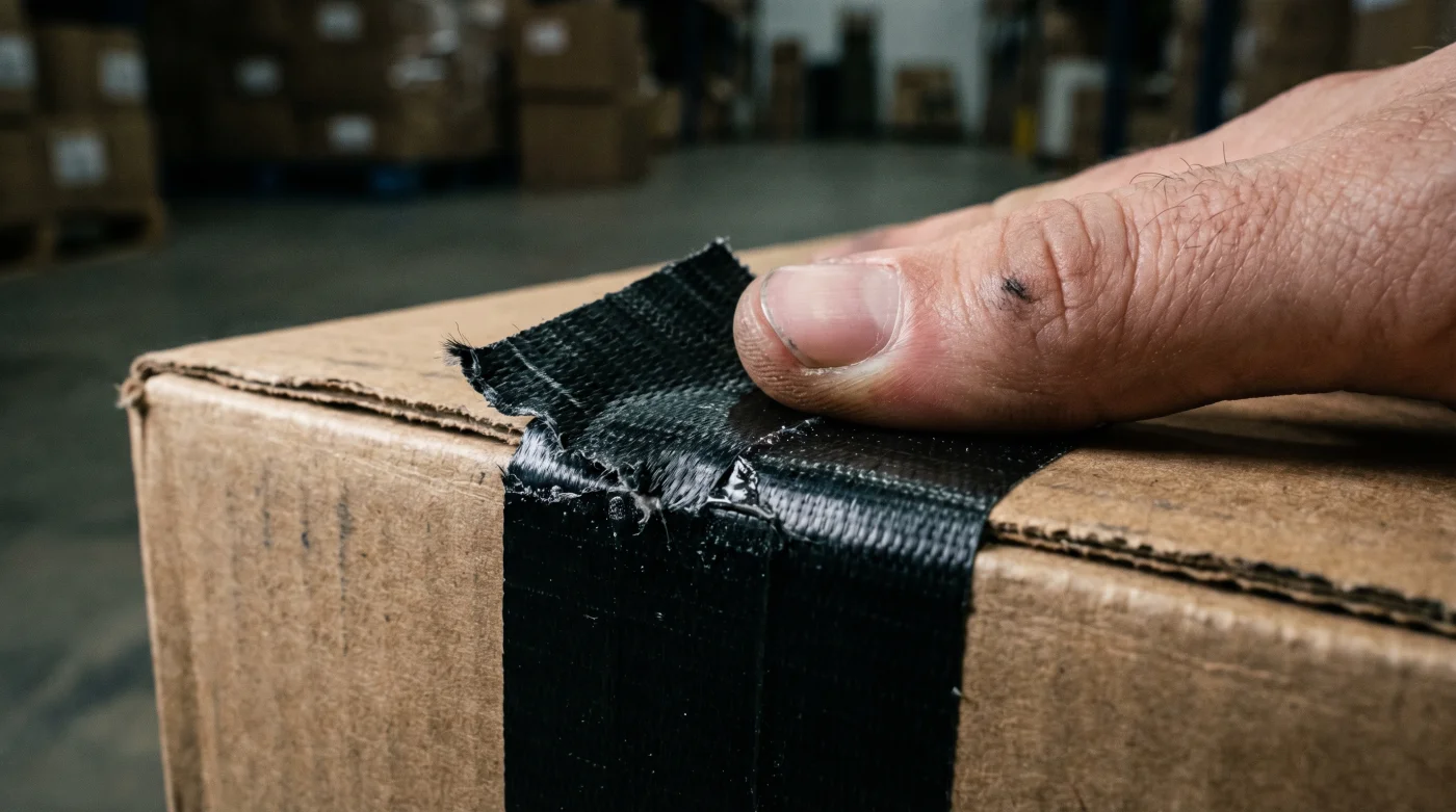 Probablemente asumes que una maquinaria robótica compleja sella estos paquetes, pero la realidad del trabajo de trinchera es mucho más terrenal. Todo el imperio logístico se sostiene sobre un sonido seco y pesado: el rasgar agresivo de un adhesivo denso y oscuro contra la superficie del cartón.
