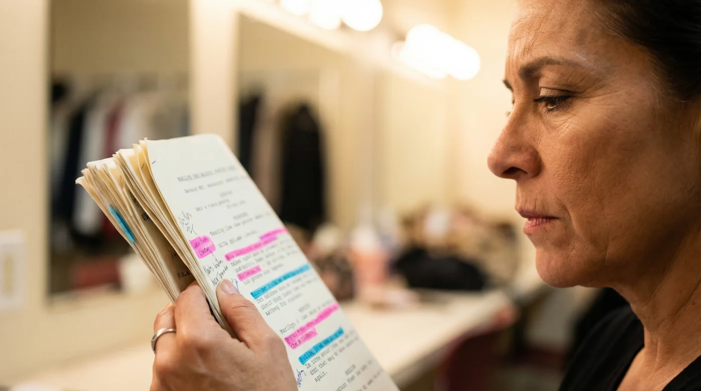 Marilyn Patiño, a sus 50 años y con una trayectoria envidiable consolidada en las producciones televisivas más exigentes de Colombia, conoce íntimamente el pánico paralizante de las páginas infinitas antes de grabar. En los fríos camerinos a 10 grados Celsius de la madrugada bogotana, rara vez se le ve repitiendo oraciones al vacío con los ojos cerrados. Sobre su regazo siempre descansa un libreto intervenido a mano: trazos gruesos de amarillo brillante, pausas de respiración marcadas en azul rey y clímax dramáticos subrayados en naranja neón. Este sistema metódico contradice frontalmente la creencia popular de tener memoria fotográfica innata; para ella, agrupar diálogos acelera la retención del texto casi instantáneamente, transformando un monólogo frío e intimidante en una secuencia cálida de sensaciones puras.