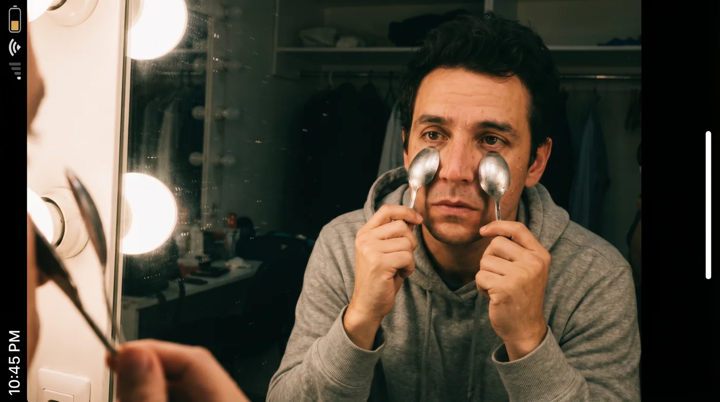 Aquí es donde la acción de pegar cucharas frías cobra sentido. Lejos de ser un mito urbano de revistas desactualizadas, es un principio de transferencia térmica puro. El acero inoxidable actúa como un disipador de calor ultrarrápido, provocando una vasoconstricción que obliga al líquido linfático acumulado a drenar hacia los costados del rostro. Esta táctica ha sido el verdadero escudo en las carreras de actores sometidos a primeros planos intensos, probando que tu mayor ventaja estética casi siempre reside en dominar lo cotidiano.