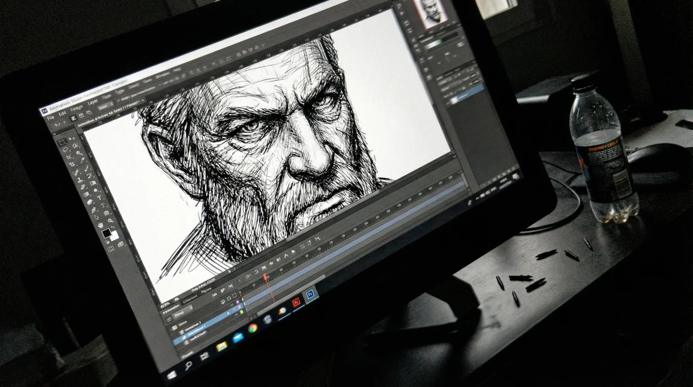 Al trazar docenas de líneas finas que se intersectan en los ángulos más oscuros de un rostro o en la musculatura en tensión de un caballo de carreras, el ojo es engañado instantáneamente. Tu cerebro no procesa una serie de “líneas negras amontonadas”, lee inmediatamente “profundidad tridimensional real”. Esta supuesta imperfección visual es, paradójicamente, la ventaja táctica más grande frente a una competencia completamente esterilizada.