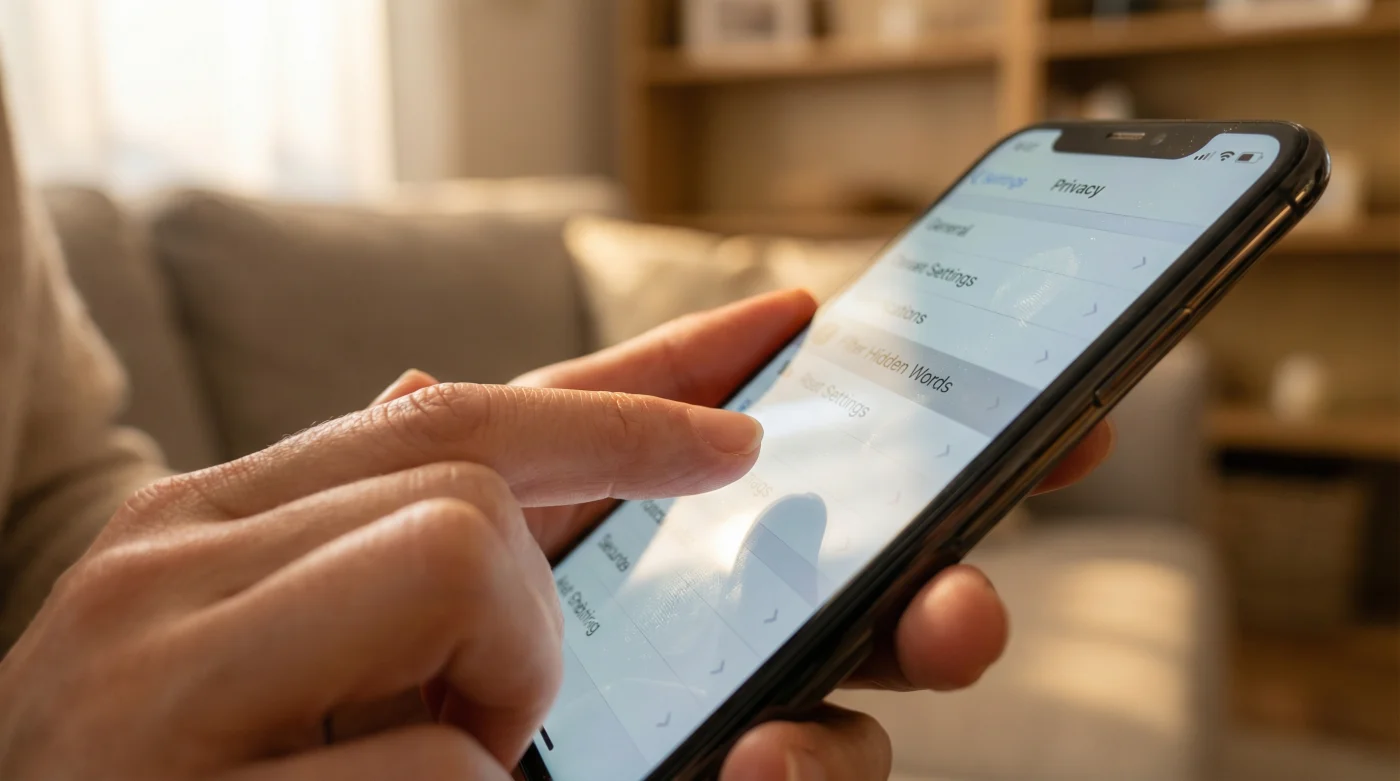 - Aísla la infección en Instagram y TikTok: Ve a Configuración > Privacidad > Palabras ocultas. Activa ‘Ocultar comentarios’ y añade cuidadosamente tu lista al apartado de ‘Palabras y frases personalizadas’. En TikTok, usa el filtro de comentarios por palabras clave de la misma manera.