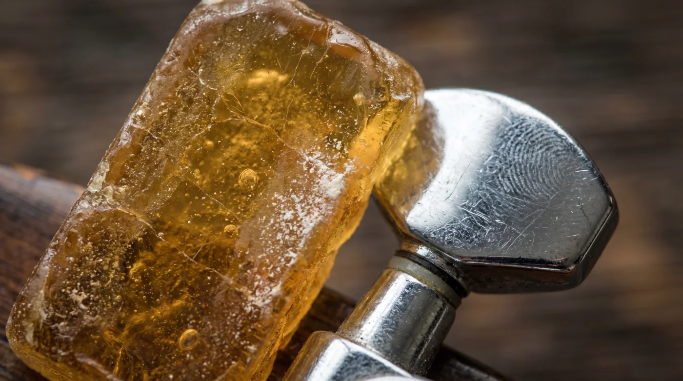Paso uno, preparación térmica del bloque. Consigue resina de colofonia clara o ámbar. Una barra estándar en tiendas de música clásica en Bogotá cuesta unos 15.000 COP. Golpea suavemente una esquina del bloque con el mango de un destornillador pesado para fracturarla y obtener un polvo muy fino, parecido al azúcar pulverizada.