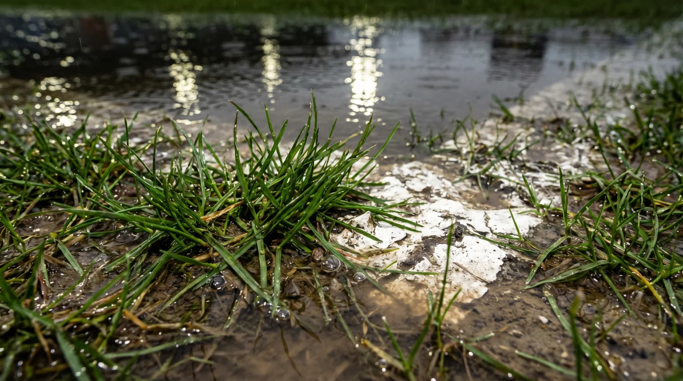 La narrativa común dicta que los estadios de élite europea son impermeables a la naturaleza. La realidad es que el subsuelo híbrido del campo funciona como el filtro de una cafetera sobrecargada. Cuando caen 40 milímetros de agua en menos de una hora, la capa de arena fina y grava se compacta, sellando los canales de evacuación. El agua no tiene a dónde ir y rebota abruptamente hacia la superficie.