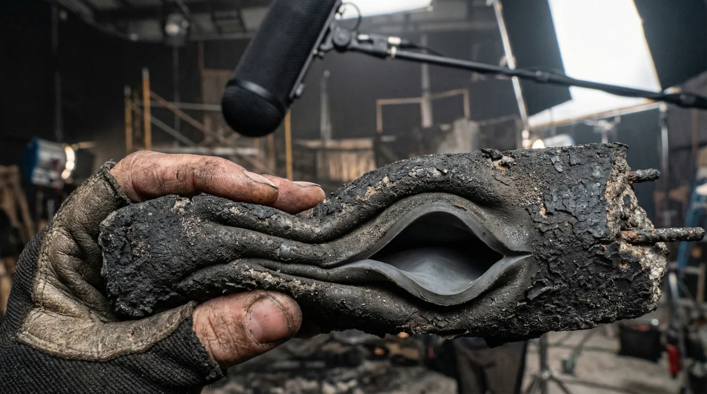 La utilería de goma silenciosa no es simplemente una medida de prevención de riesgos laborales; es una trampa acústica intencional y brillante. Cuando un objeto visualmente masivo choca sin hacer ningún sonido, le cede a la voz humana el monopolio absoluto del espectro sonoro. El caos visual ocurre de manera espectacular frente a la lente, pero el lienzo de audio permanece totalmente inmaculado, preparado para que los artesanos sonoros lo pinten meses después en una sala de postproducción.