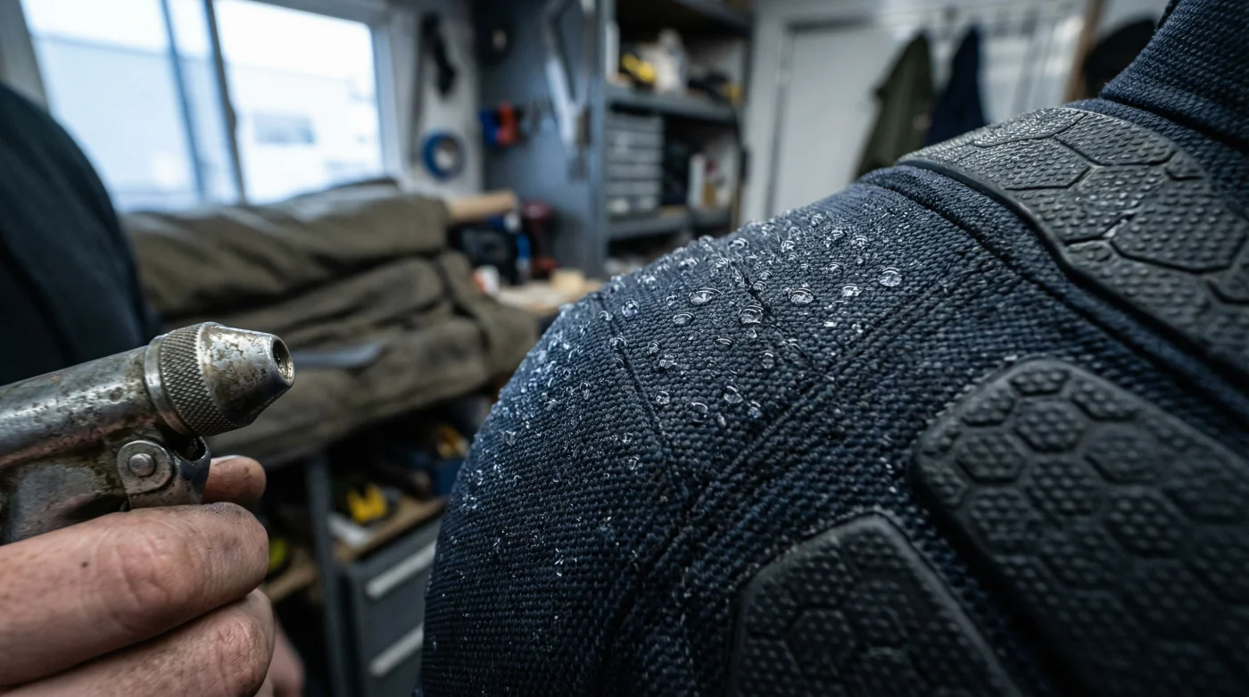 Si utilizas trajes de neopreno grueso o indumentaria técnica de motociclismo con insertos plásticos de protección contra el clima, el problema de desgaste es exactamente el mismo. El calor corporal aumenta la fricción interna y el viento frío del exterior reseca y endurece los paneles sintéticos que deberían protegerte.