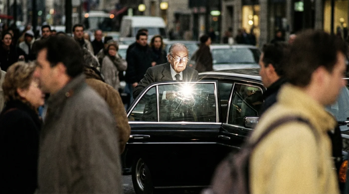 Al usar lentes de cristal mineral súper pulido, convertía su rostro en un espejo de precisión milimétrica. Cuando el destello del flash golpeaba la superficie de sus gafas, el material rebotaba la luz con tanta intensidad y crudeza que arruinaba por completo la exposición del sensor del paparazzi, devolviéndoles solo una silueta quemada y un negativo inservible.
