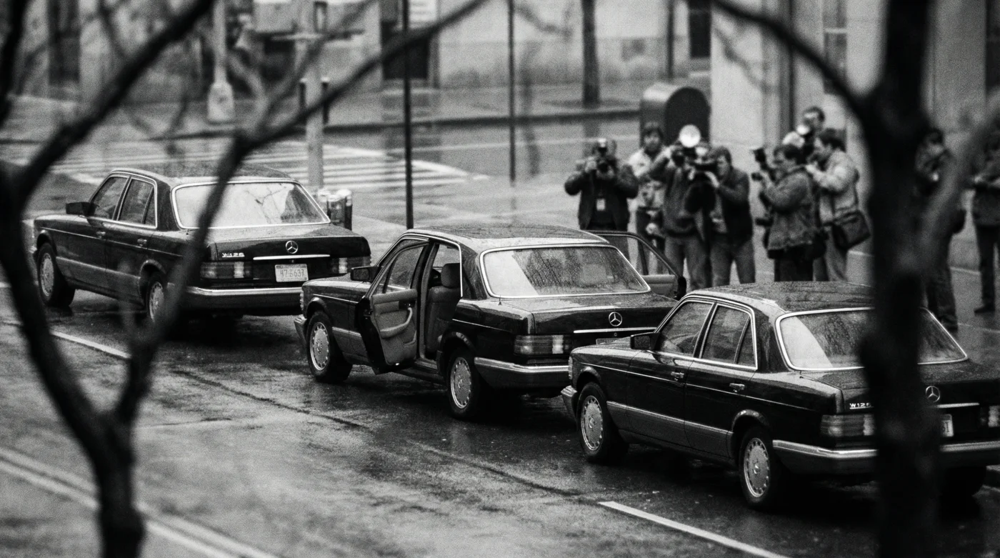 Pero imagina la escena desde los ojos de los observadores apostados en la acera. De repente, las puertas del garaje subterráneo se abren. Tres motores alemanes idénticos rugen con una simetría inquietante. Tres sedanes de lujo oscuros, con los cristales fuertemente polarizados y el brillo pulcro del chasis, toman direcciones distintas al llegar a la primera rotonda. La multitud se divide velozmente, duda de su instinto y pierde el rastro original.
