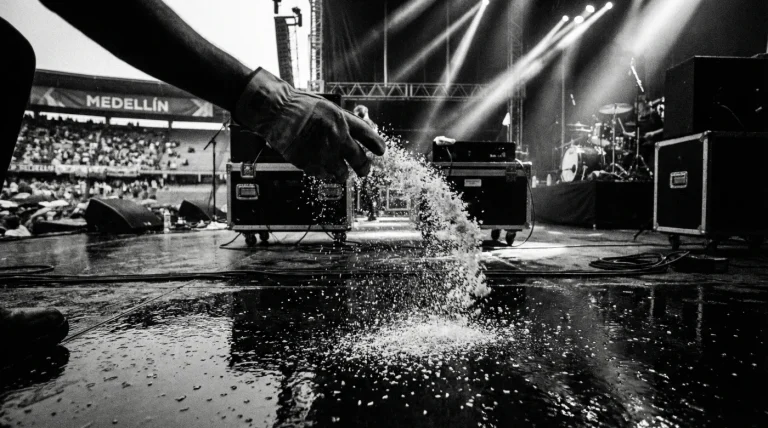 Noticias Conciertos en Medellín secan escenarios mojados rociando este aserrín químico absorbente By Ana López / April 20, 2026 Descubre el secreto logístico detrás de los grandes conciertos en Medellín: un aserrín químico que solidifica los charcos en segundos,…